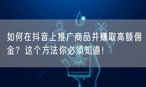 通过掌握抖音推广商品的赚钱攻略,你将能够轻松赚取高额佣金。在竞争激烈的市场中,利用社交媒体的力量实现电商营销目标,让你的商品脱颖而出!赶快行动起来,加入抖音推广的行列吧!